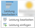 Es ist dabei zu beachten, dass die Funktionen der Zu-/Abschläge im Ribbon oder über das Kontextmenü nur aktiv sind, wenn Sie die Tätigkeitenzeile auswählen von welcher ein Zu-/Abschlag erfolgt. D.h. wenn Sie beispielsweise die Leistungszeile oder die Zu-/Abschlagszeile auswählen, ist der Punkt Zu-/Abschläge im Ribbon bzw. im Kontextmenü deaktiviert.