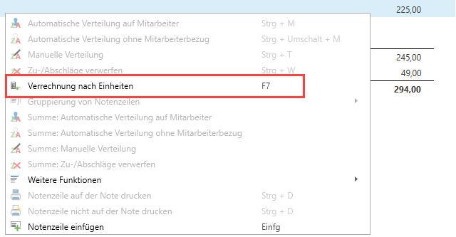 Durch Rechtsklick auf den Betrag können Sie mit dem Kontextmenü oder der F7-Taste die Verrechnung wechseln.