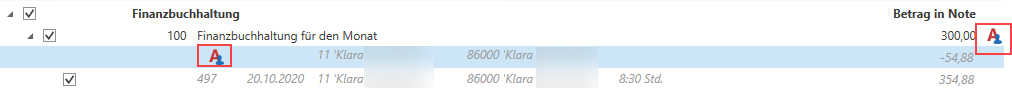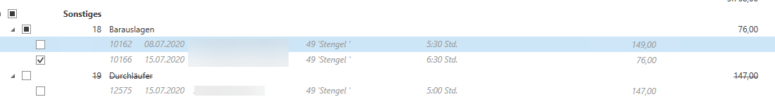 Werden ganze Tätigkeiten von der Verrechnung ausgeschlossen, so werden diese Tätigkeiten und der zugehörige Betrag durchgestrichen dargestellt.