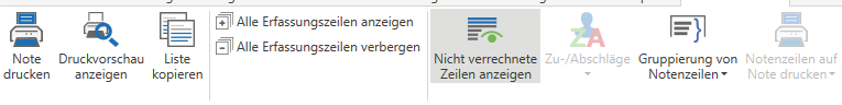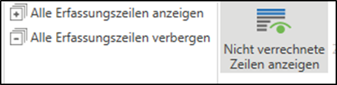 Von der Verrechnung ausgeschlossene Zeilen können über die Schaltfläche Nicht verrechnete Zeilen anzeigen eingeblendet werden. Wenn im Ribbon die Schaltfläche grau markiert ist, so ist diese Funktion eingeschaltet. Sollen die nicht verrechneten Zeilen nicht angezeigt werden, so klicken Sie noch einmal auf diese Schaltfläche, sodass diese weiß markiert ist.