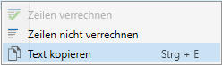 Zusätzlich besteht die Option den Text einer/mehrerer Erfassungszeile zu kopieren und einzufügen. Wählen Sie hierfür eine/mehrere Erfassungszeilen aus und mit der Tastenkombination Strg+E oder mittels Kontextmenü können Sie den Text kopieren. Mit der Tastenkombination Strg+V oder auch über das Kontextmenü können Sie dann den Text einfügen.