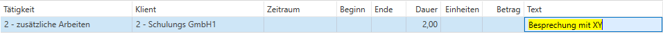 Der Text der Verrechnungsgruppe und der Tätigkeit kann ganz einfach mittels Doppelklicks auf den Text der geändert werden soll, angepasst werden.