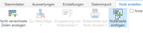 Sollte eine zusätzliche Notenzeile eingefügt werden, so ist dies entweder über die Schaltfläche Notenzeile einfügen im Ribbon oder über das Kontextmenü mit der rechten Maustaste möglich. Dazu müssen Sie eine Leistungszeile markieren und die entsprechende Schaltfläche auswählen.