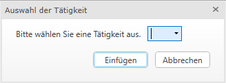 Nachdem Sie die Schaltfläche betätigt haben, öffnet sich ein eignes Fenster, wo Sie die Tätigkeit auswählen müssen, welche zusätzlich eingefügt werden soll.