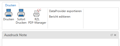 Falls Sie die Note ausdrucken oder am PDF-Manager ausdrucken möchten, so klicken Sie auf das Symbol Note drucken im Ribbon.
